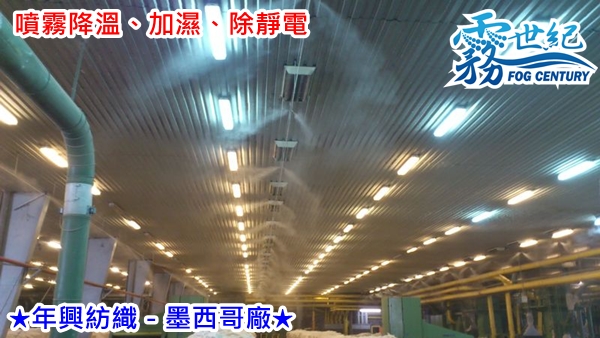 基於國外業務接洽處理上,我公司經驗豐富,年興紡織經過數次詢問,相當肯定我司的專業度。爾後與年興紡織的墨西哥廠廠長多次討論後建議使用壓力式噴霧加溼,提高空氣中相對溼度保持產品品質的穩定度。並於夏天時,可作噴霧降溫運用。